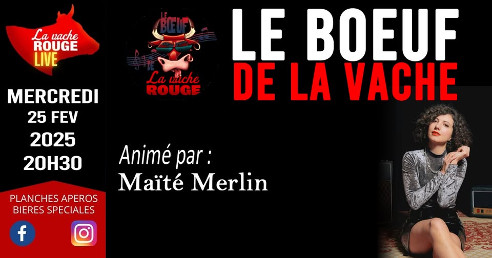 Hier, le bœuf mensuel à la Vache Rouge était animé par Maïté Merlin. Maïté est autrice-compositrice-interprète (elle nous a d’ailleurs offert en avant-première sa dernière chanson À ma place dont le clip est sorti aujourd’hui), elle anime également des blind tests régulièrement à la Vache Rouge Brotteaux. Mais depuis 4 ans que je viens tous les mois à la Vache Rouge Vénissieux, c’est la première fois que je la rencontrais. Sa setlist était constituée de chansons connues et qu’elle savait « pouvoir chanter en cas d’absence de chanteurs ou chanteuses » :