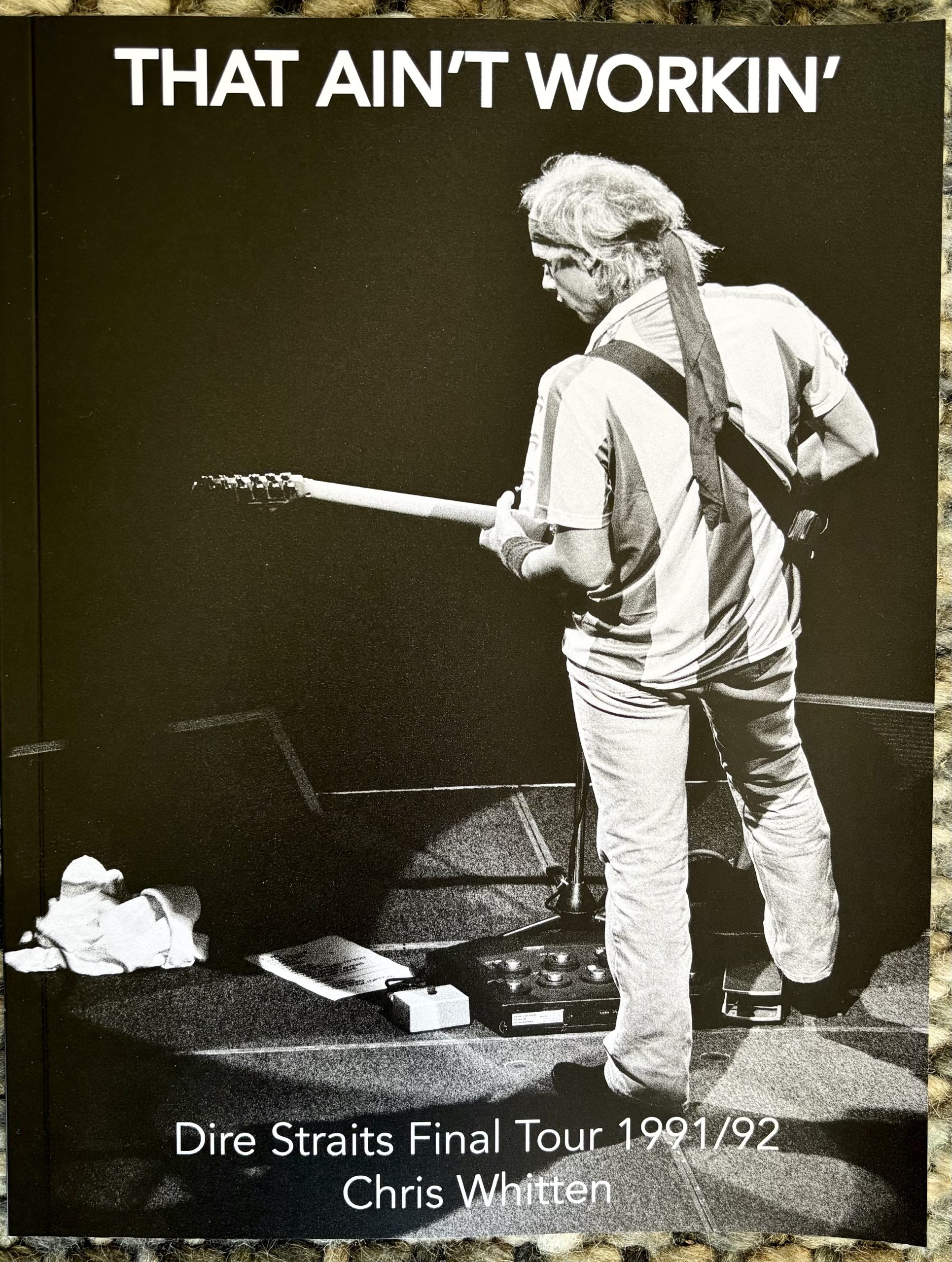 Ce matin, il a annoncé sur ce même forum qu’il allait prochainement sortir un livre sur la question. Pour l’instant la seule info est la couverture qui présente Mark Knopfler sur scène, de dos, pris en photo par le batteur. Quant au titre sarcastique That Ain’t Workin’, issu bien évidemment de la chanson Money for nothing où le personnage principal fustigeait les rockstars qui « ne travaillent pas », il retranscrit bien ce que Chris Whitten a exprimé à propos de cette tournée, et pourrait dans ce contexte plutôt se traduire par : « ça ne fonctionne pas »….
