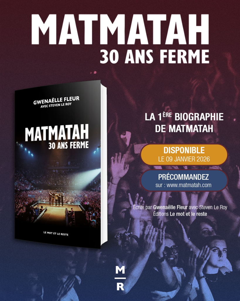 Le 9 janvier 2026 paraitra en librairie ‘Matmatah – 30 ans ferme’ de Gwenaëlle Fleur avec la collaboration de Steven le Roy, aux éditions Le Mot et le Reste.