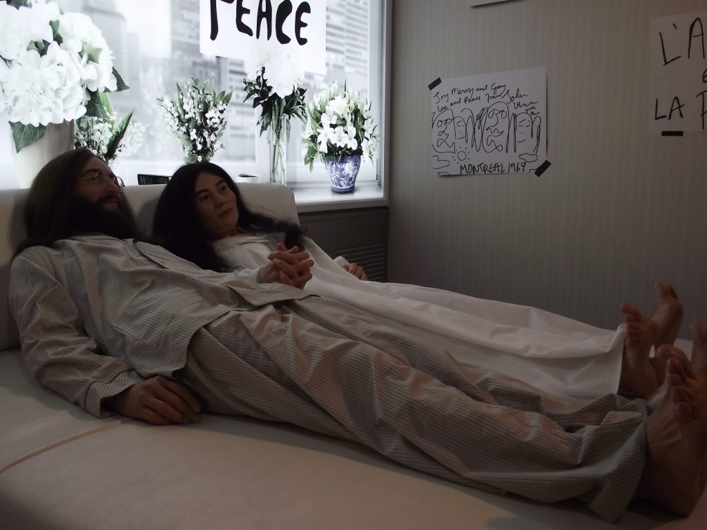 En mars 1969, John Lennon et Yoko Ono profitent de la médiatisation de leur mariage pour promouvoir la paix dans le monde. Ils passent leur lune de miel dans la suite présidentielle (chambre 702) à l’hôtel Hilton d’Amsterdam aux Pays-Bas pour une semaine, entre le 25 et le 31 mars 1969. Le couple invite les journalistes du monde dans sa chambre tous les jours de 9h à 21h.